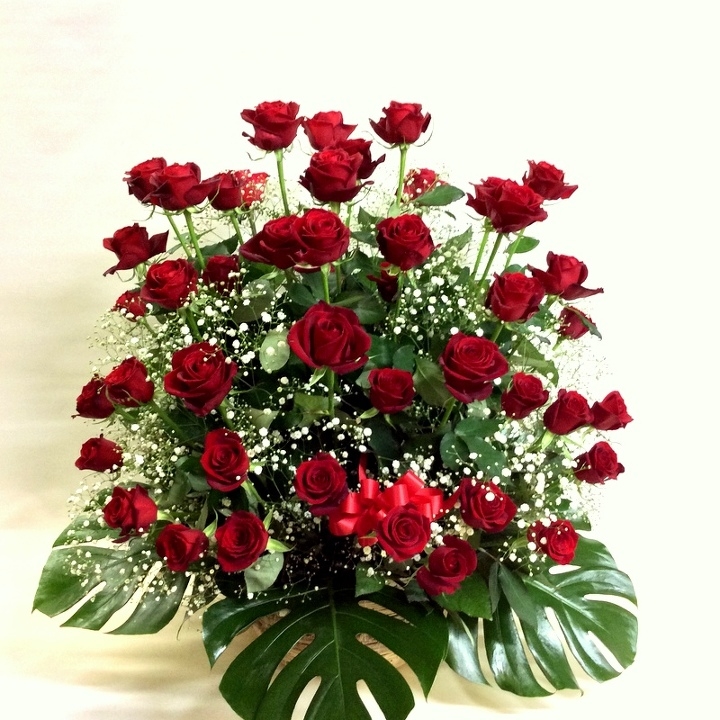 アレンジメント【赤バラとカスミ草】